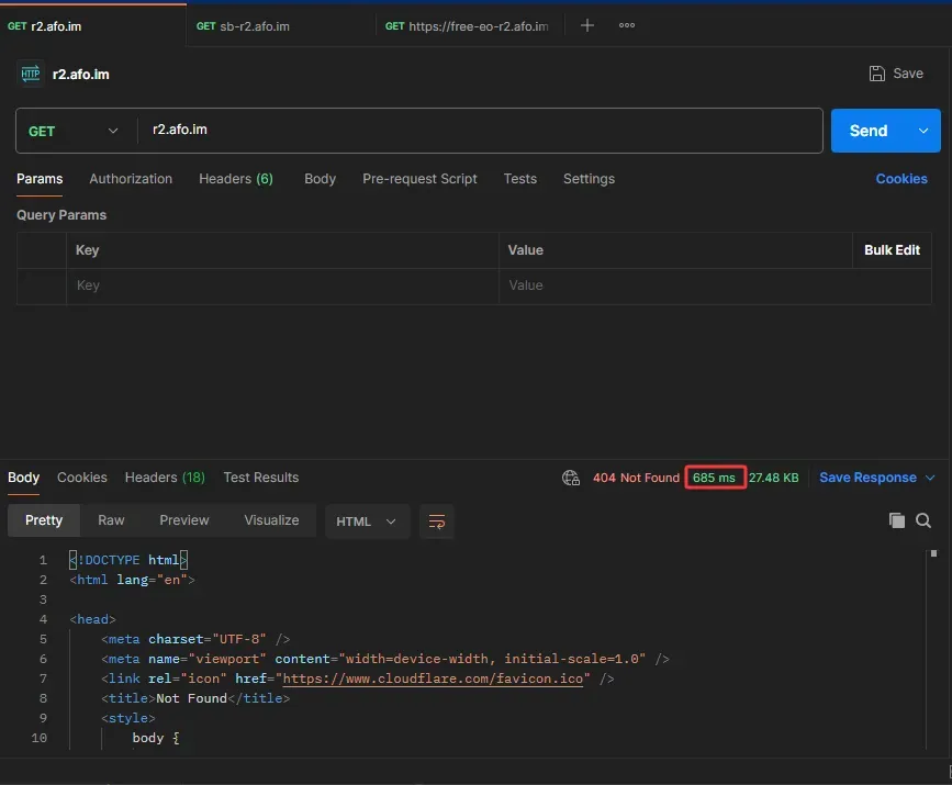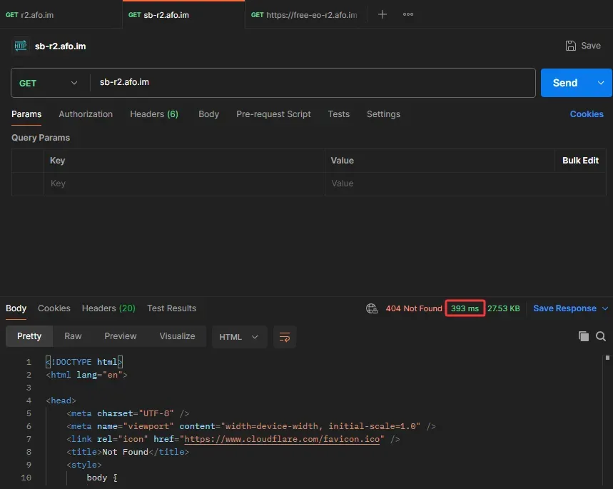 测试Cloudflare R2默认的404页面HTML需要多长时间可以接收到