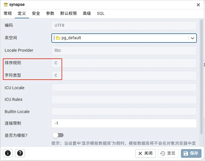 安装并创建名为 synapse 用户名也为 synapse 的数据库