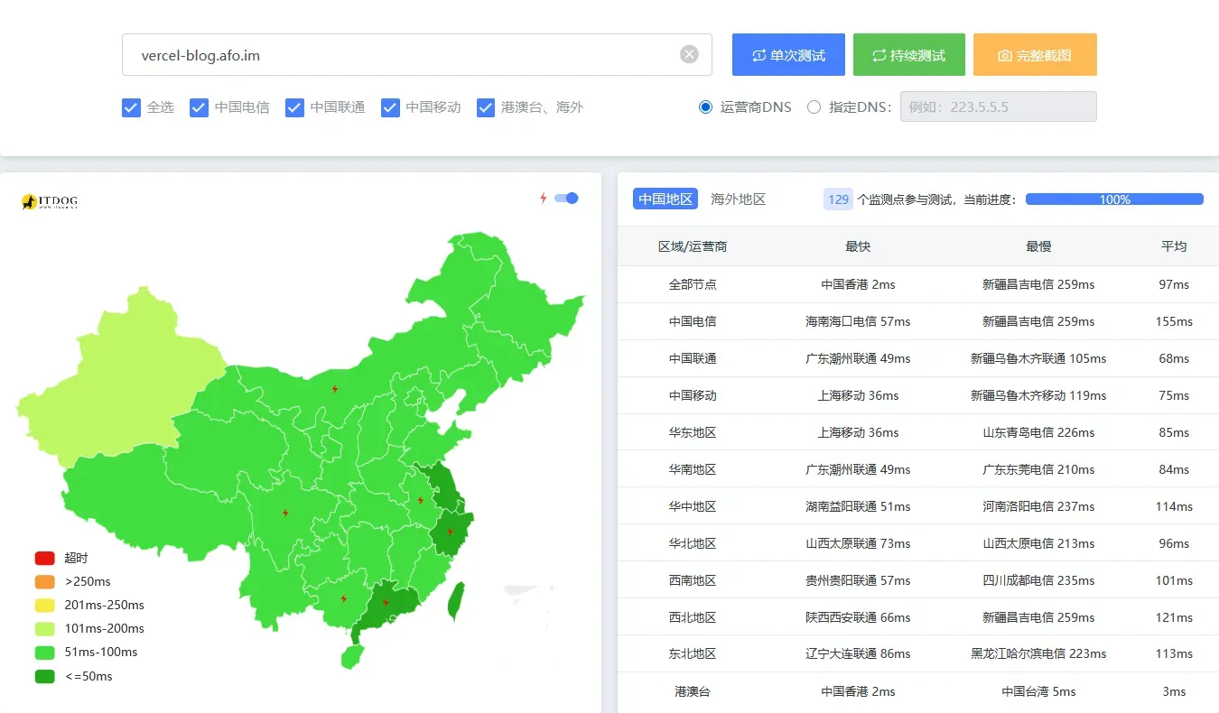 默认提供的CNAME延迟一般。下图是使用了本人的HK优选: eo.072103.xyz(注: EdgeOne Page不可用)