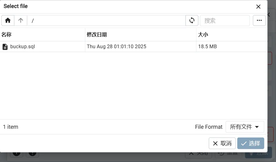 选择刚才备份的数据库文件