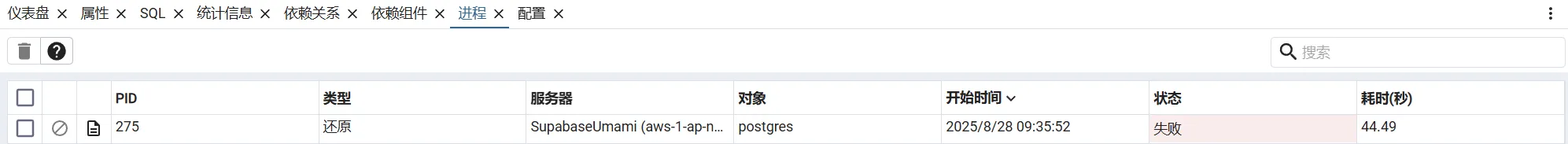 这些报错大概就是,找不到之前数据库的用户之类的,实际上表结构已经被还原了