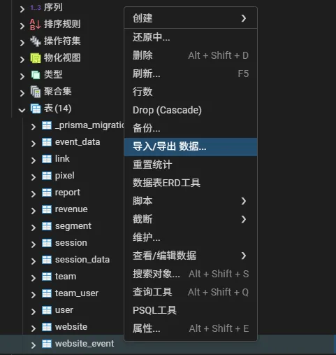首先,我们想要迁移,首先肯定是要拿到原来的Umami Cloud存放的数据