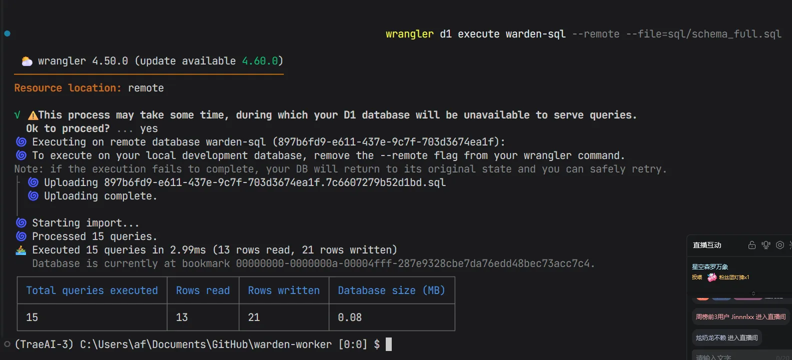 wrangler d1 execute warden-sql --remote --file=sql/schema_full.sql