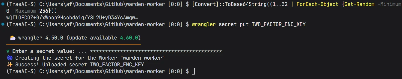wrangler secret put TWO_FACTOR_ENC_KEY
