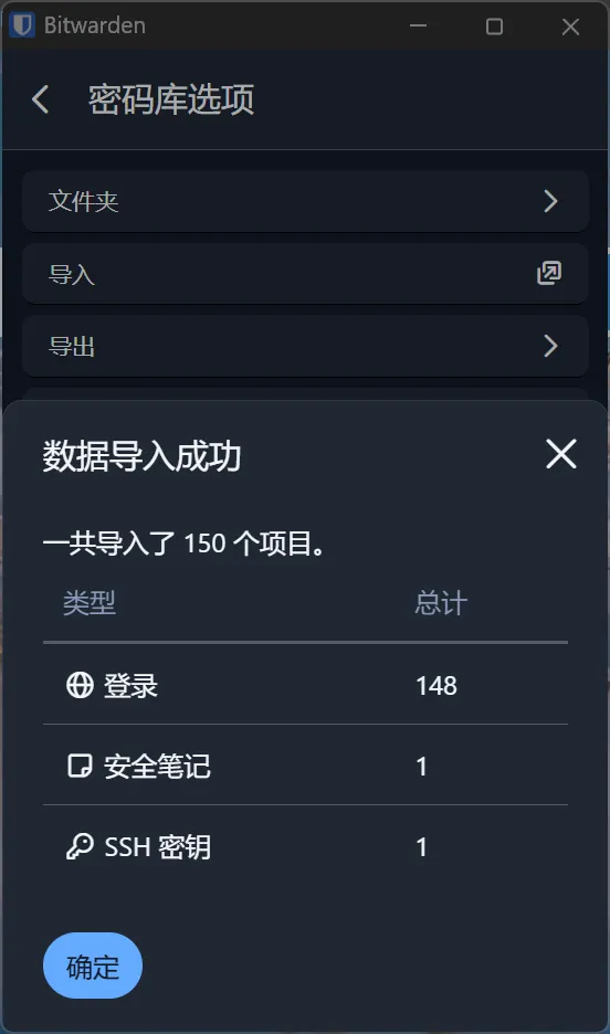 再登录当前密码库,前往 设置 - 密码库选项 - 导入 - .json