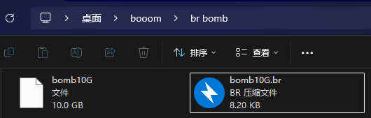 [!TIP] zstd与br的压缩率远高于gz,所以一般都使用他们来制作压缩炸弹,压缩后与源文件的比率可以达到惊人的 1:124878.0487804878