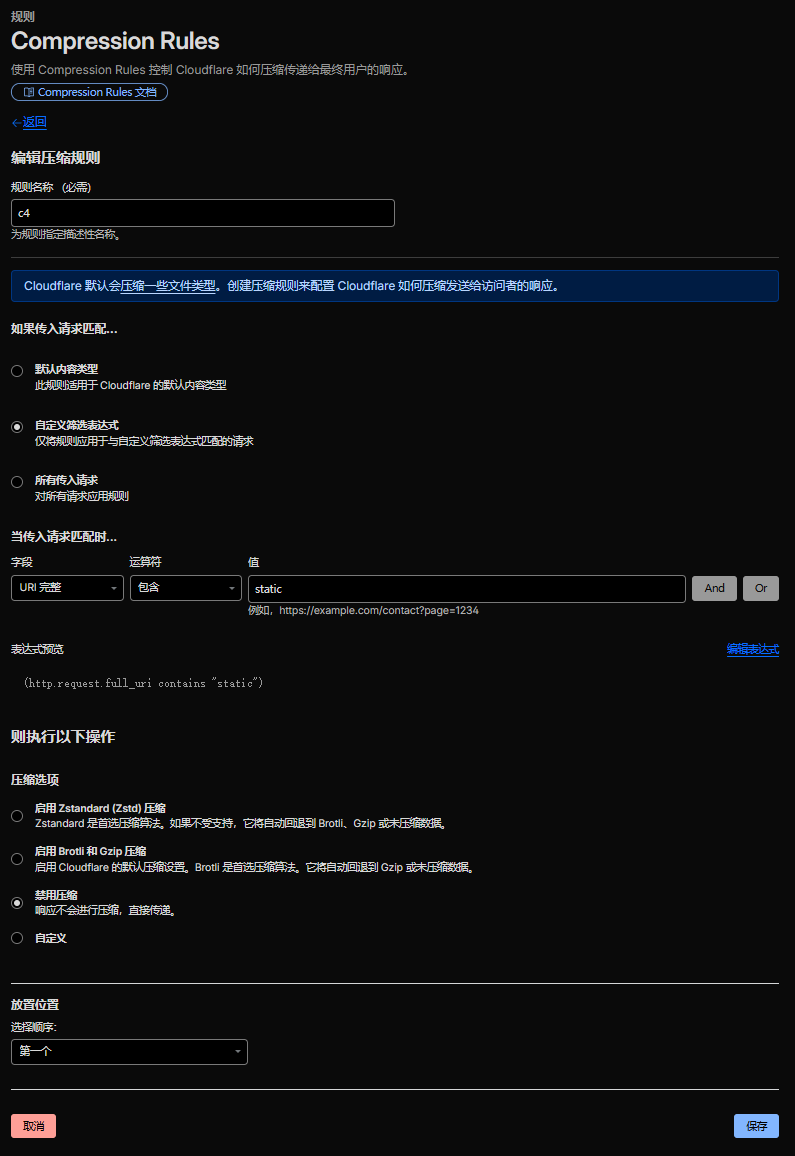 这样就没有效果了,所以我们首先需要禁用Cloudflare的自动压缩,使其直接提供原始文件