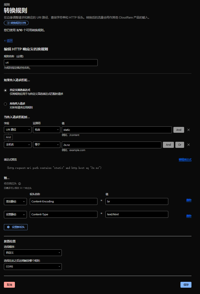 接下来,编辑Cloudflare规则,使其能给客户端一个我们所期望的标头