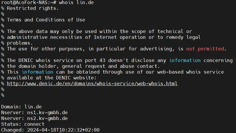 你也许已经知道在Linux系统上专门有一个包就叫做 whois 我们可以方便用它来查询Whois。我们现在就可以试试