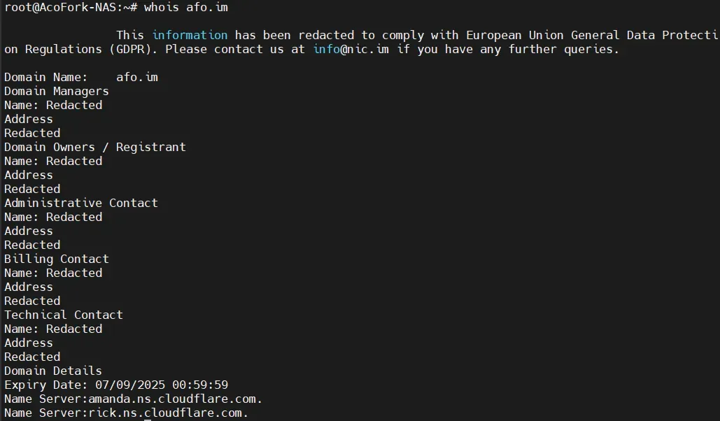 如果了解域名,就知道域名一旦被注册就会在Whois服务器留下一些相关信息(比如:注册方,注册地,注册时间等等),可以被公开查询。